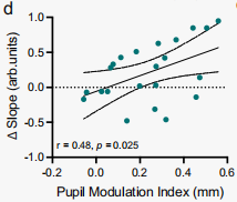 瞳孔自我调节对脑电图测量的全部皮质觉醒具有调节作用(图9)。